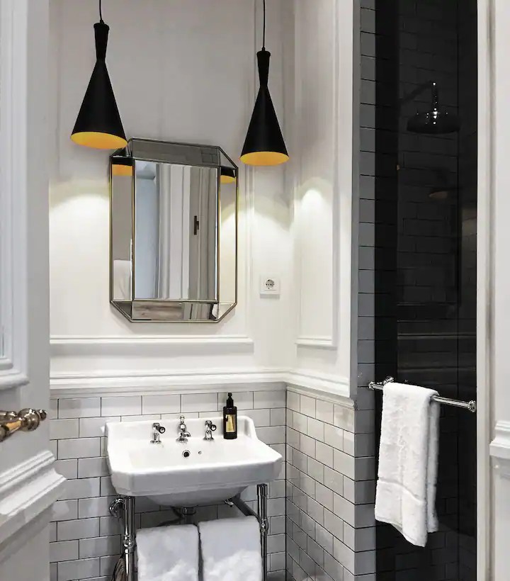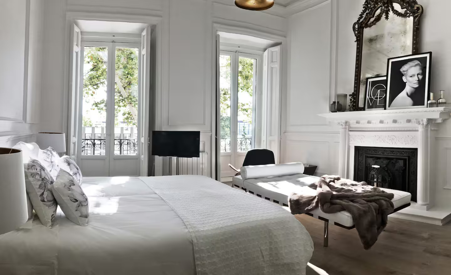 La décoration monochrome peut être difficile à maîtriser. Dans ce studio classique en noir et blanc à Madrid, elle est parfaitement aboutie. Car ici, comme on doit le faire lorsqu’on choisi ces deux tons, c’est le blanc qui prédomine. L’alliance de ces deux coloris neutres avec les beaux éléments anciens se révèle un excellent choix. Cet appartement est situé dans une maison de maître construite au 19e siècle dans la capitale espagnole. Son architecture et ses volumes nécessitait des choix sobres pour garder la vedette.