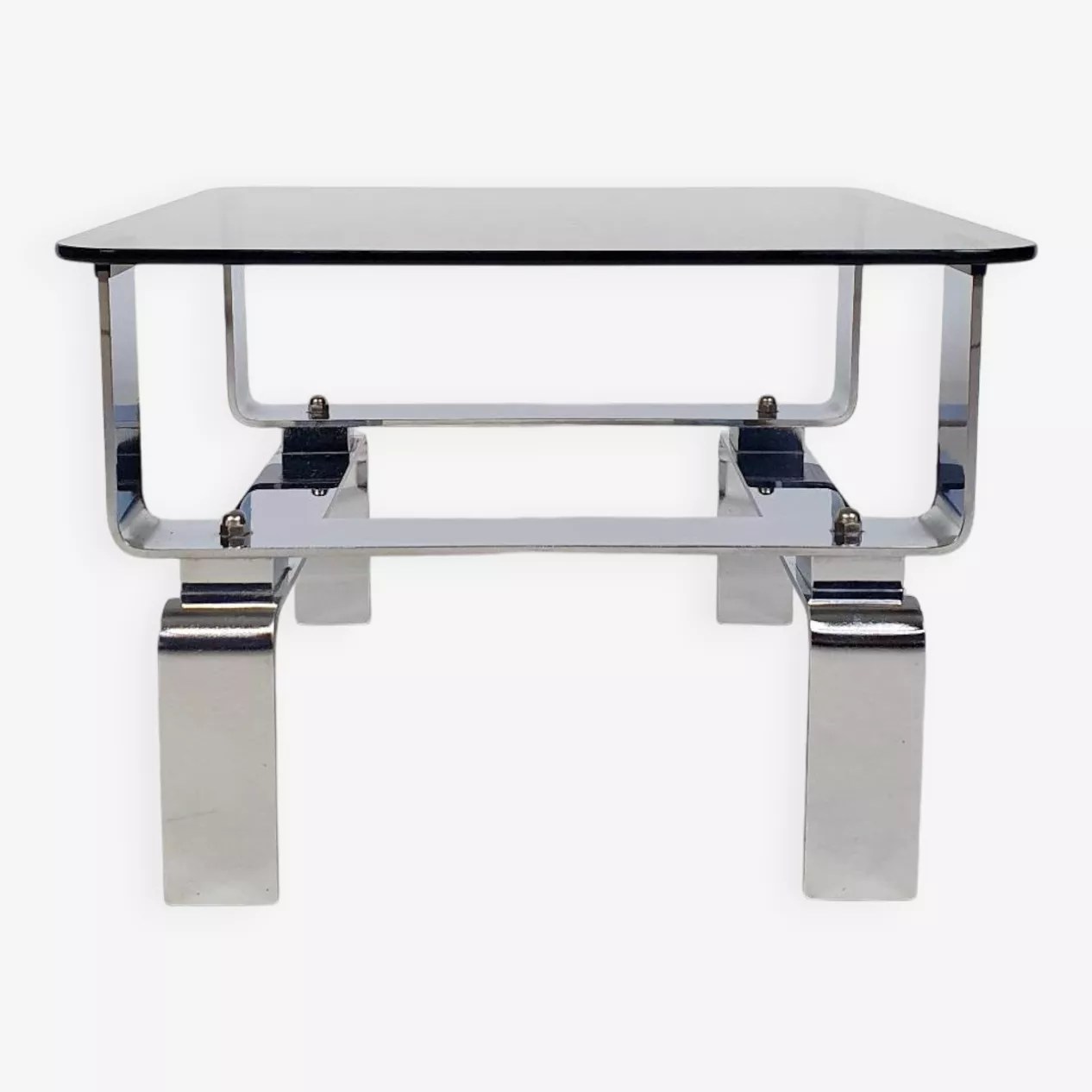 Table basse métal chromé et verre fumé 70 chez Selency