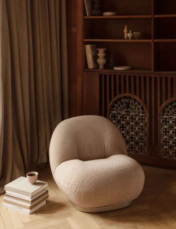 - Du velours, des tapis à poils longs, des lampes en forme de gouttes et des accessoires aux formes organiques.