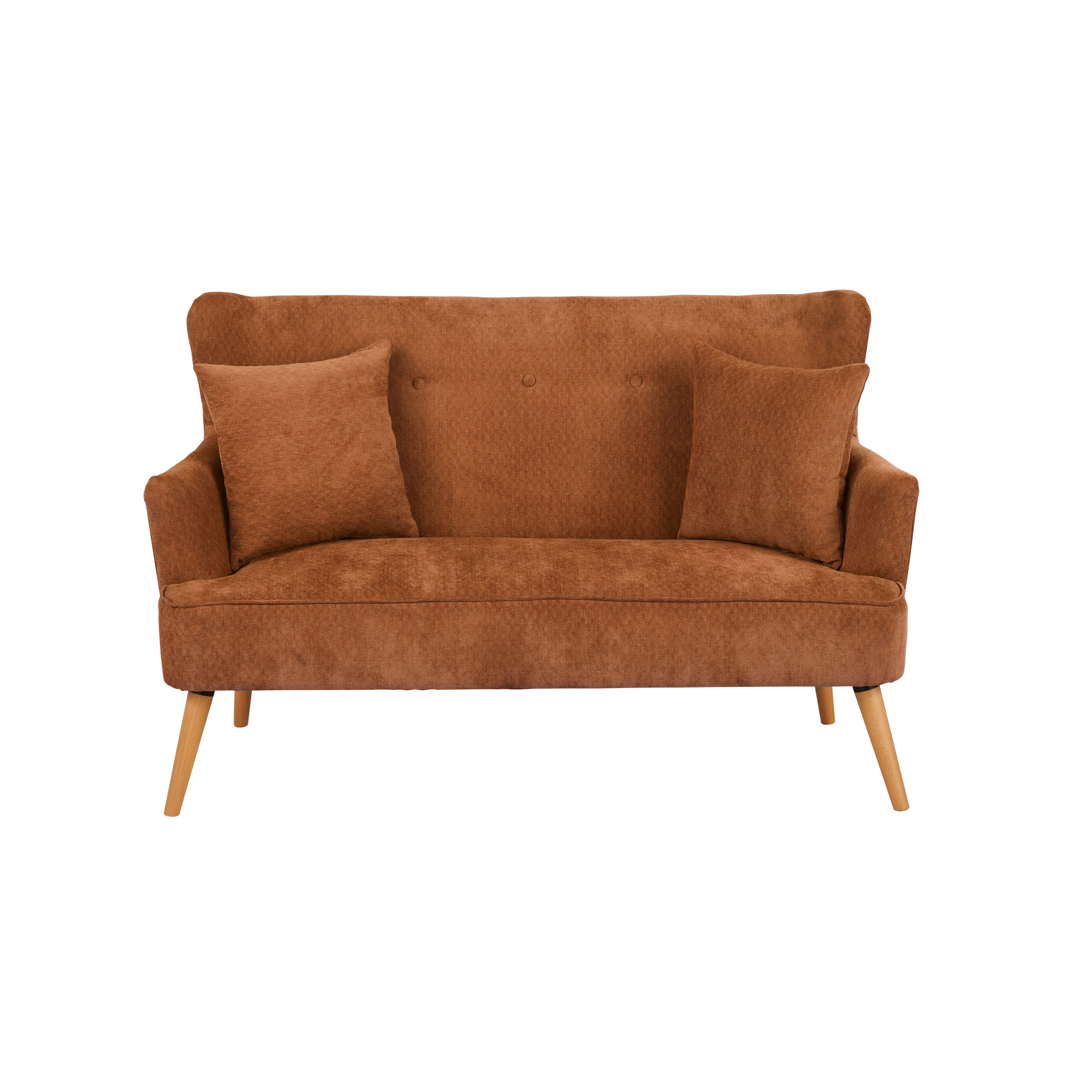 Leon – Canapé 2 places en tissu recyclé rouge brique Le canapé 2 places LEON est un modèle intemporel qui s’intégrera parfaitement à votre salon.Son revêtement en tissu recyclé rouge brique est à la pointe de la tendance.Sa structure en pin massif et contreplaqué de peuplier lui assure une grande robustesse.Ses pieds en hêtre massif coloris teck clair lui confèrent un charme authentique.Ce canapé est une création des stylistes de Maisons du Monde.