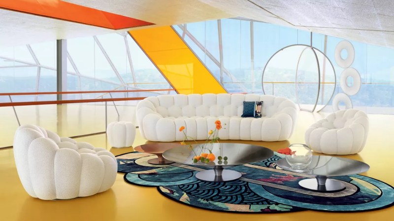 Imaginé par Sacha Lakic, designer passionné par les technologies de pointe, Bubble, exprime l’équilibre entre innovation, fonction et émotion. Inspiré de formes naturelles et minérales et entièrement réalisé à la main, sa conception a nécessité le développement de tissus extensibles spécifiques qui épousent parfaitement ses formes toutes en rondeur. Avec son style unique, le canapé Bubble, en version droite ou arrondie, est un modèle iconique des collections Roche Bobois