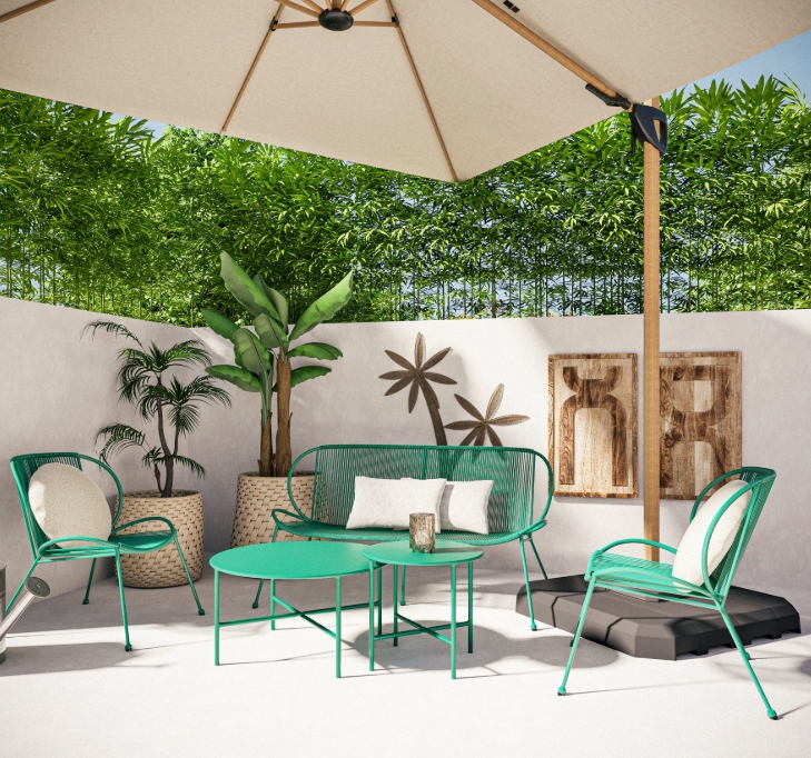 Nosara – Salon de jardin 4 places en résine et métal verts