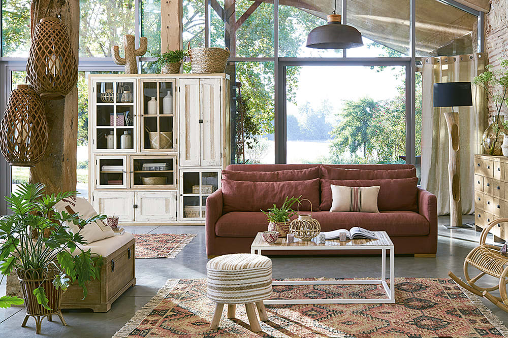 Le style campagne chic se caractérise par l’utilisation du bois pour le mobilier, de formes traditionnelles, mêlées à des couleurs actuelles pour le réinventer. Découvrez et inspirez vous d’une de nos enseignes françaises préférées. Maisons du Monde a aménagé un salon et une cuisine dans ce style chaleureux et décontracté, idéal pour votre maison si vous aimez ce style , et pourquoi pas dans un appartement en ville.