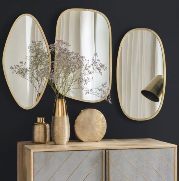 MARINA – Miroirs organiques en métal doré (x3) 37×59