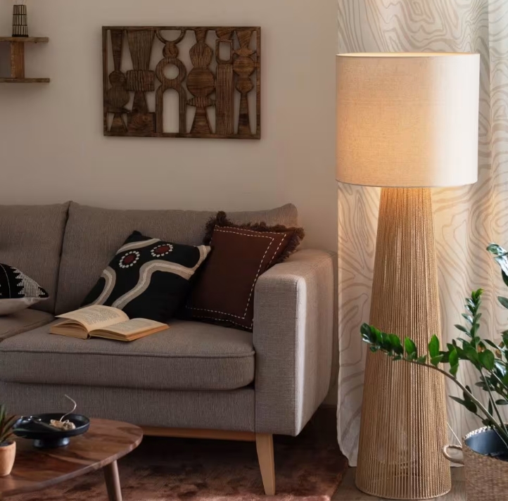 Kata – Lampadaire en papier et abat-jours en polyester recyclé beige H141