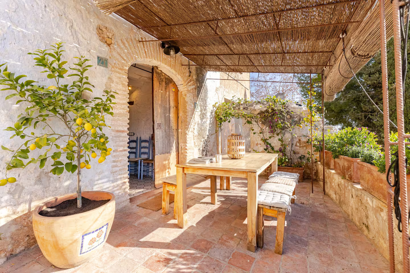Ardenya n’a que 100 habitants, ce qui en fait un endroit au calme absolu, même s’il se trouve non loin des plages. Le silence de la nuit est remplacé par le chant des oiseaux le matin, et c’est ici que se trouve cette maison de village en Espagne, au sud de Barcelone. C’est une maison assez grande, et qui est bien distribuée avec un salon, une salle à manger et une cuisine et 4 chambres et les salles de bain à l’étage.