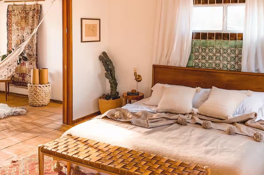 La Joshua Tree House est une hacienda de deux lits et deux salles de bain située à 10 minutes de l’entrée ouest du parc national de Joshua Tree à Joshua Tree, en Californie, et à environ 10 minutes à pied du centre-ville de Joshua Tree avec de nombreux magasins et restaurants. Si vous recherchez une expérience complètement silencieuse dans le désert c’est ici .C’est un endroit où les rêveurs peuvent se réinitialiser, réfléchir et créer. Conçu avec un rythme « lent » à l’esprit, vous apprécierez chaque partie de votre séjour ; de faire du café local le matin, en choisissant le disque parfait à mettre au coucher du soleil, ou en vous relaxant dans le bain à remous et un ciel étoilé.