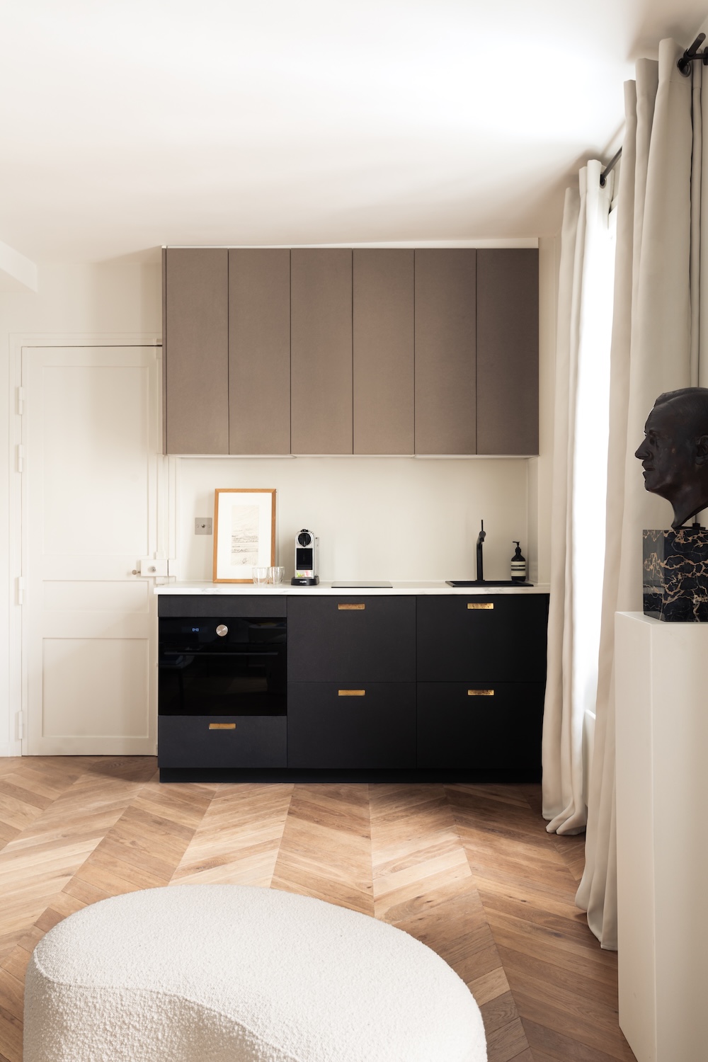 Emilie imagine des intérieurs élégants et intemporels, où chaque détail est pensé avec soin et contribue à l’équilibre des volumes et des matières. Son approche vise à transformer les intérieurs en lieux uniques, où esthétisme et fonctionnalité se rencontrent naturellement. Voici l’une de ses réalisations, la rénovation d’un appartement se trouvant au 3e étage d’un immeuble situé dans le 9e arrondissement et donnant sur une cour intérieure. Vous remarquerez le vase sur la table ….. OUPPSSSSS J’ai Phallus voir quelque chose