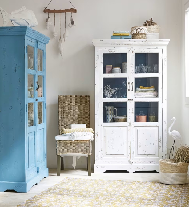 Les meubles en bois gardent un charme ancien qui s’associe parfaitement au style maison provençal. Ces derniers sont chinés, patinés et peints avec une teinte claire pour obtenir un effet à la fois vieilli et reposant. Optez pour de jolies commodes patinées ou pour une armoire en bois rustique !