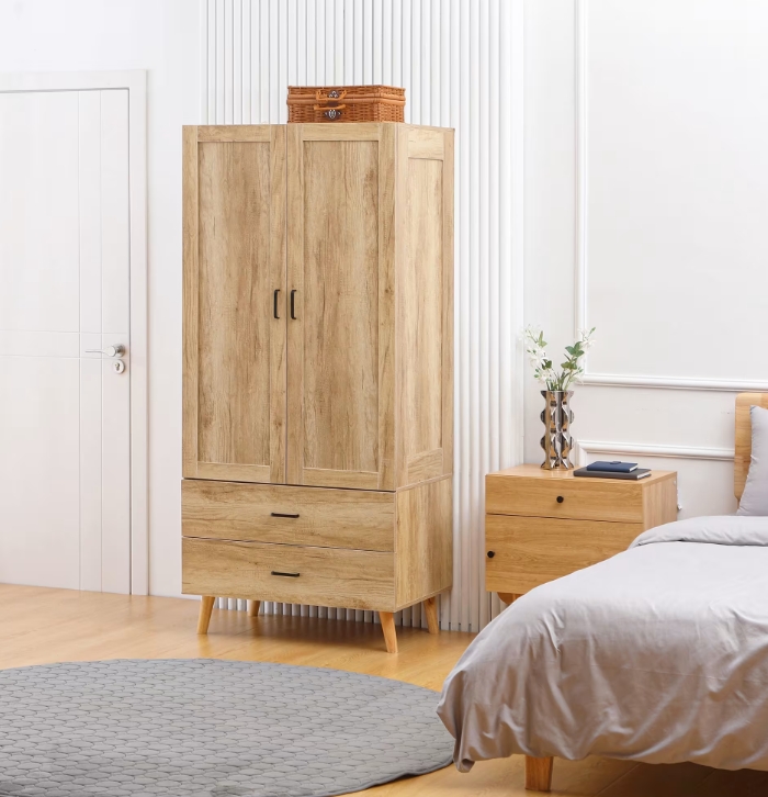 Armoire design scandinave 2 portes tiroirs penderie aspect bois clair 225,90 € Maisons du Monde