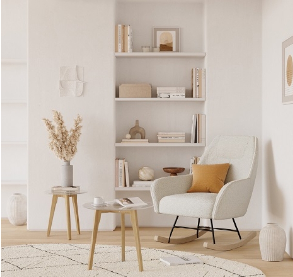 Pour le choix du mobilier, des tapis, luminaires, canapés et accessoires déco à la mode scandinave, les tons et couleurs clairs tels que les beiges et les teintes de bois clair sont là encore de mise.
