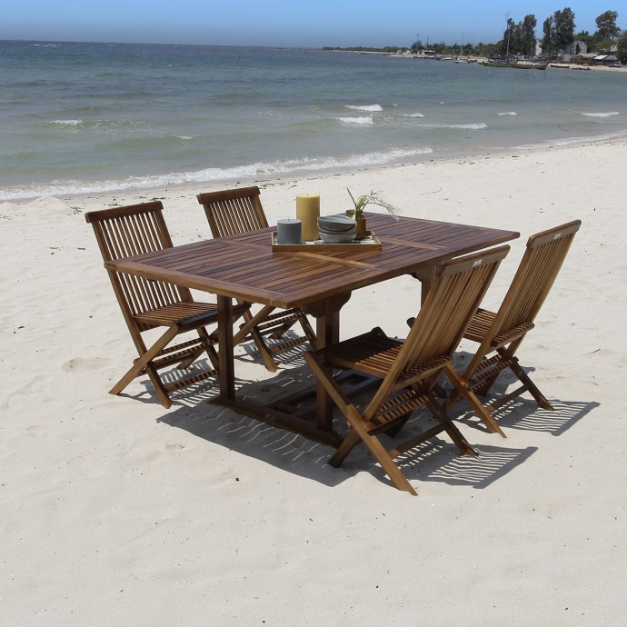 Salon de jardin en teck huilé massif extensible table et 4 chaises Pour des repas agréables en terrasse, ce salon de jardin en teck huilé se veut flexible et élégant à la fois. 549 € Berah Getah