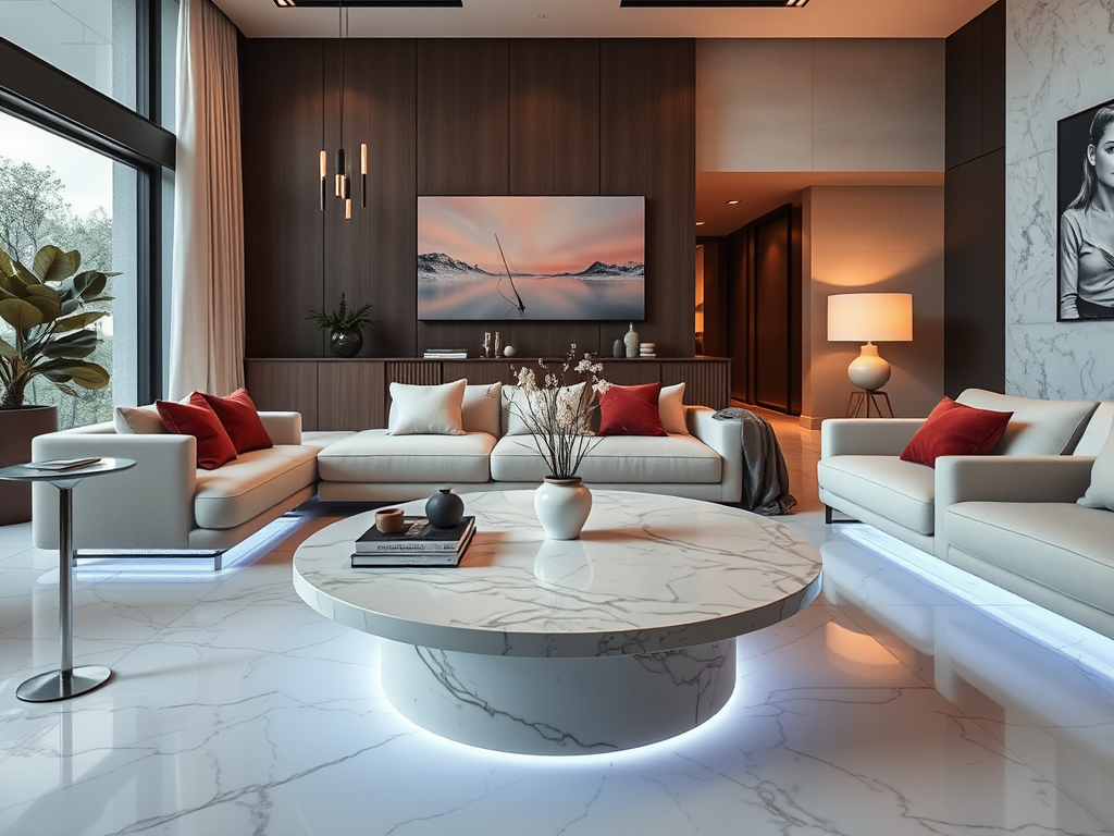 La déco tendance 2025 salon est le point de rencontre entre confort et technologie, pour un résultat qui fait tourner les têtes et les propulse vers l’avenir. Vous pouvez ajoutez des éléments lumineux LED dans vos meubles et vos étagères pour une touche encore plus futuriste.