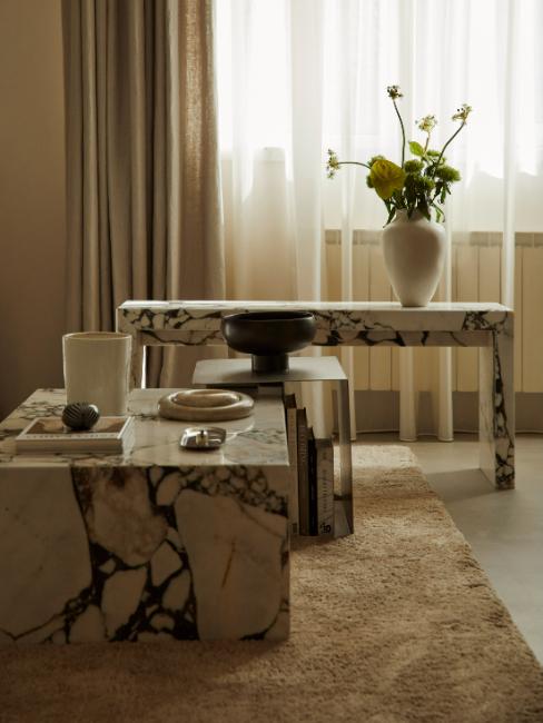 La tendance déco 2025 se caractérise d’abord par le retour des matériaux aux textures visuelles fortes. Parmi eux, le plus remarquable est le marbre Calacatta. Ainsi, pour la décoration de votre salon, une table basse dans ce marbre aux veines épaisses et contrastées créera un style rétro de caractère.