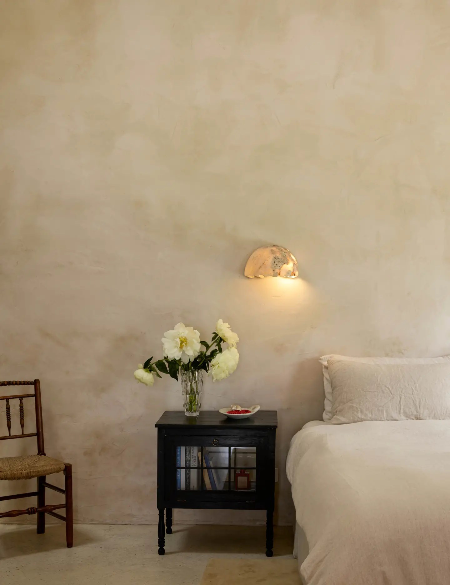 Elle a été construite avec du béton de chanvre (un matériau fabriqué avec la tige de la plante du chanvre, combiné à un liant de chaux et de l’eau) pour obtenir cet aspect, complété par un enduit de calcaire appliqué à l’intérieur et à l’extérieur. Le produit est résistant au feu et à la moisissure, c’est un excellent isolant…..