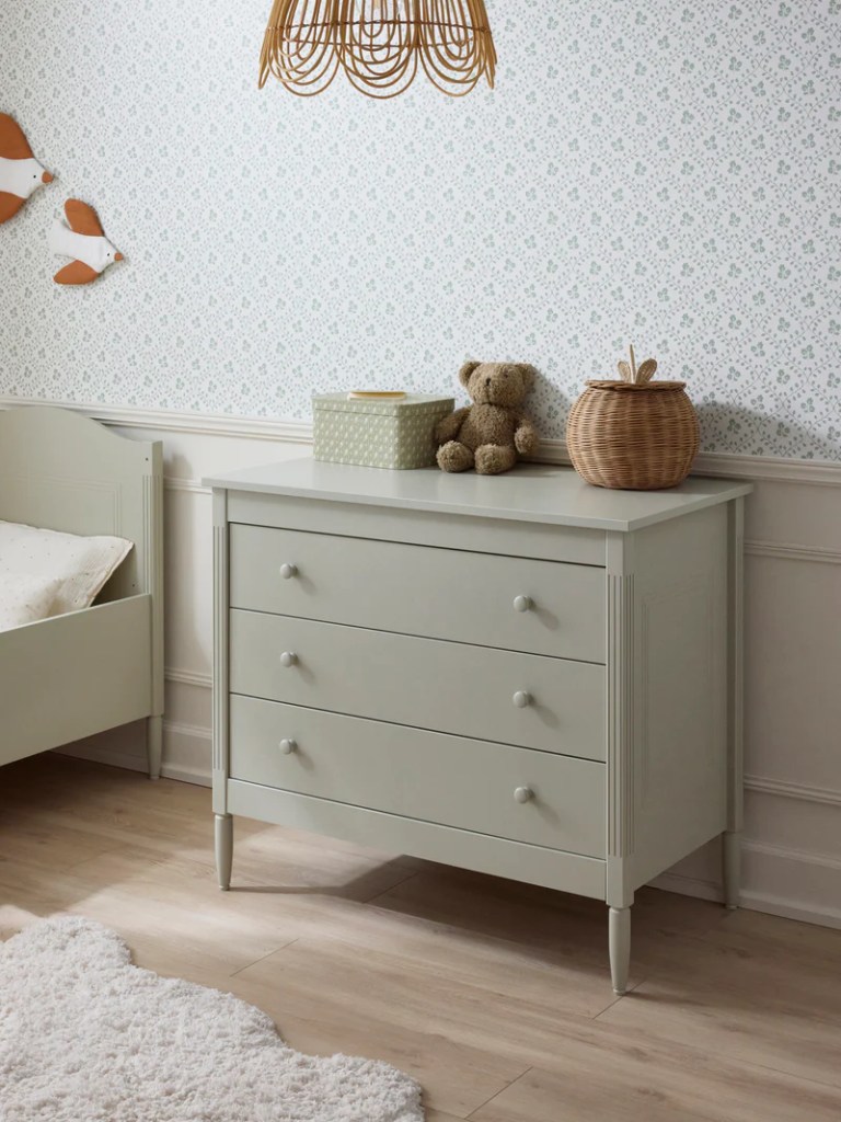 La commode Léopold se veut chic et élégante. Ses courbes et son aspect mettent en avant sa singularité. Elle se compose de 3 larges tiroirs et est conçue pour accueillir le socle à langer Léopold vendu séparément. De qualité optimale,