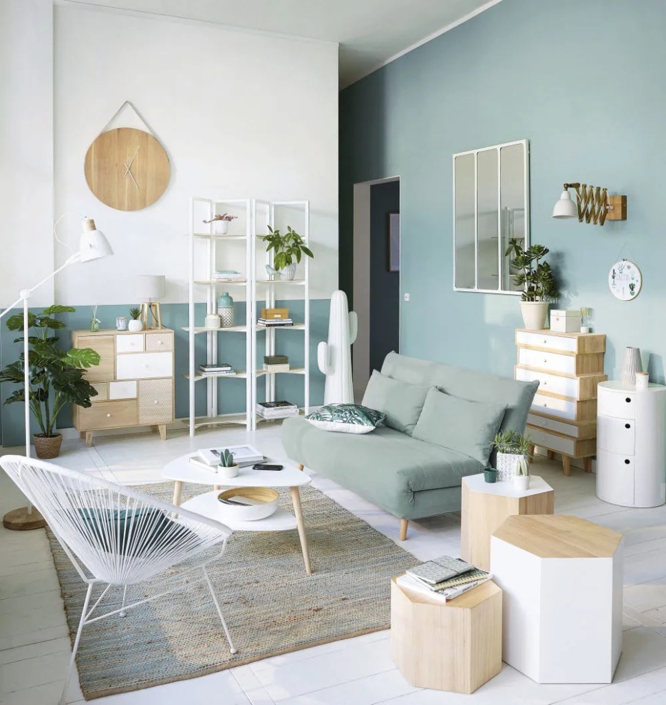 Nio – Canapé clic-clac 2 places vert d’eau 339,00 € Pour un petit cocon cosy, optez pour la banquette convertible 2 places vert d’eau NIO !