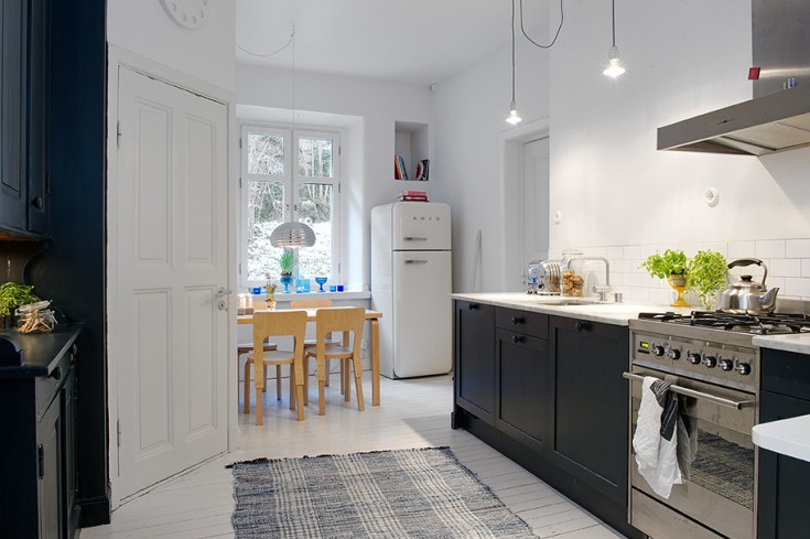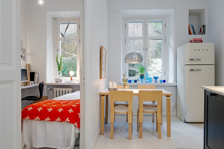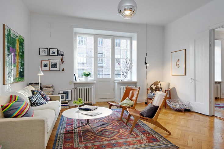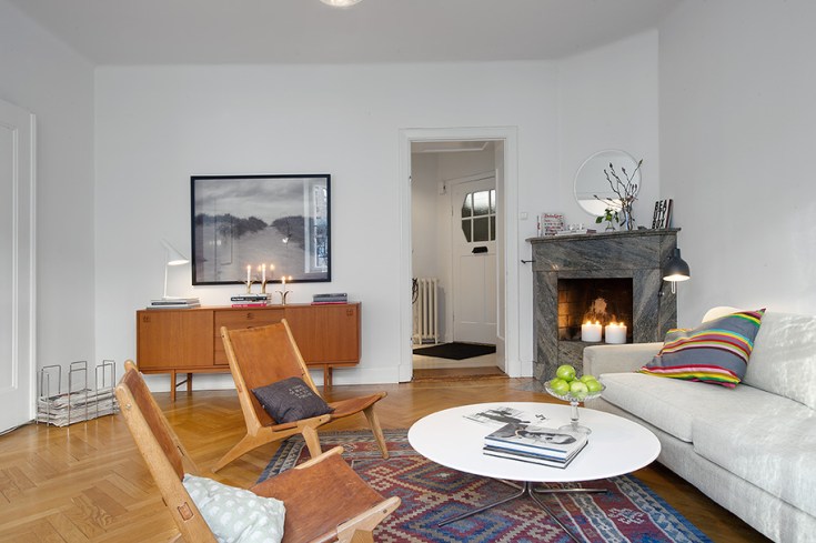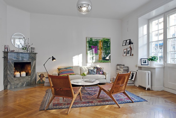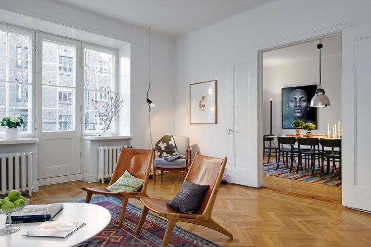 Dans un quartier ancien et vivant de la capitale suédoise, on trouve cet appartement de 106m² aux doubles portes et fenêtres à meneaux, avec sa cheminée et son beau parquet en chêne. L’intérieur est meublé à la scandinave, avec le raffinement propre à ces contrées du Nord de l’Europe. Bois, cuir et pièces vintage se mêlent dans une parfaite harmonie.