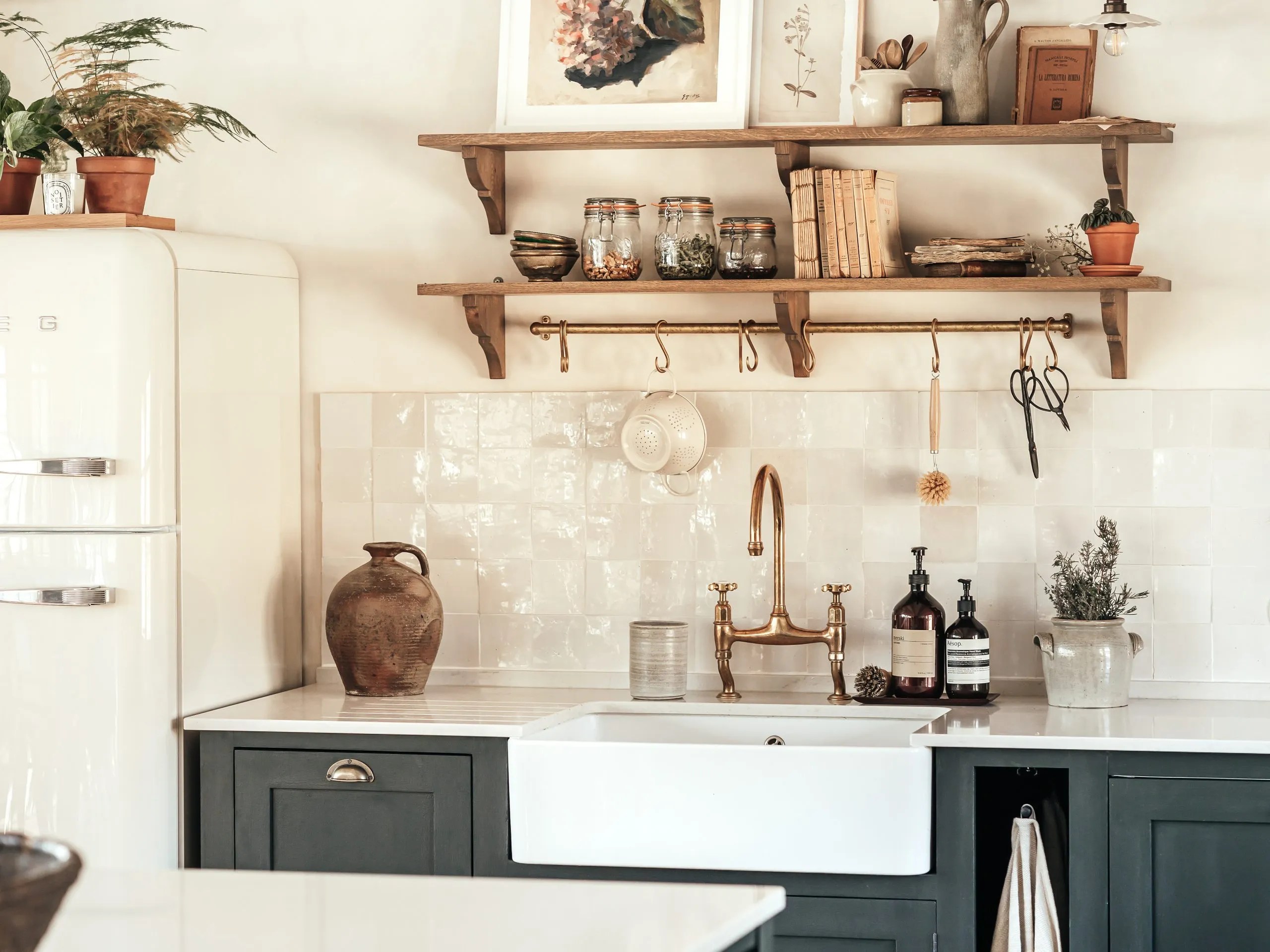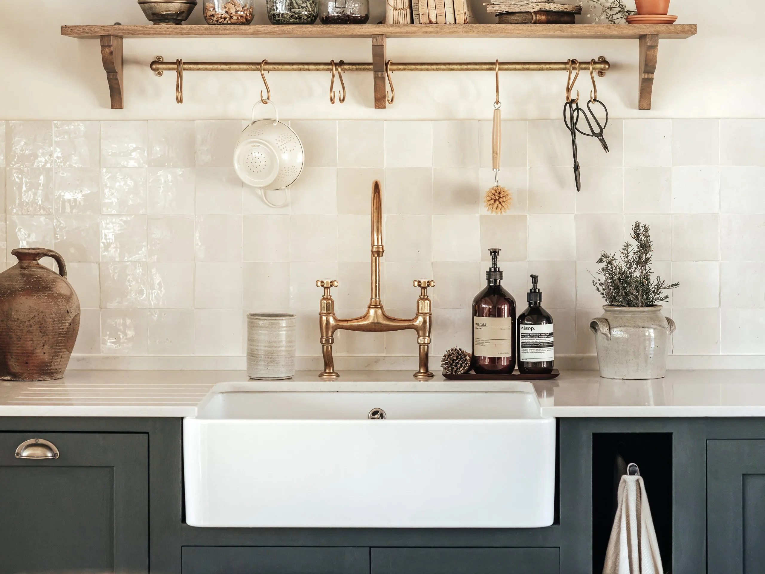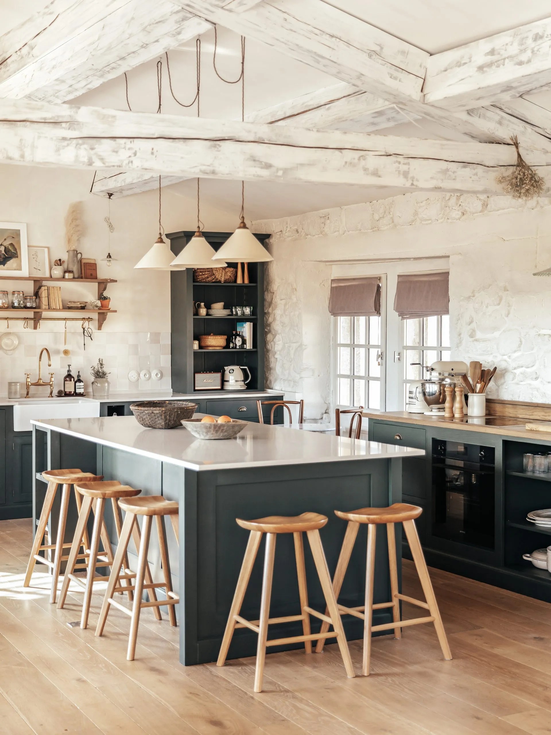 Pour moi, la cuisine est bien plus qu’un espace fonctionnel : c’est le coeur de votre maison, l’endroit chaleureux où l’on se rassemble pour partager des moments de vie et des souvenirs qui durent. La tendance en décoration intérieure à l’heure actuelle est douceur et authenticité. On a toujours besoin de se retrouver chez soi dans un environnement rassurant et agréable. La cuisine étant un des lieux qui a une place prépondérante dans nos maisons, elle est le reflet de ces désirs, et cette cuisine campagne chic en vert est sans aucun doute caractéristique des goûts actuels de beaucoup d’entre-nous . On aime cette cuisine Mirabeau pleine d’authenticité réalisée par Les Meubles de Métier