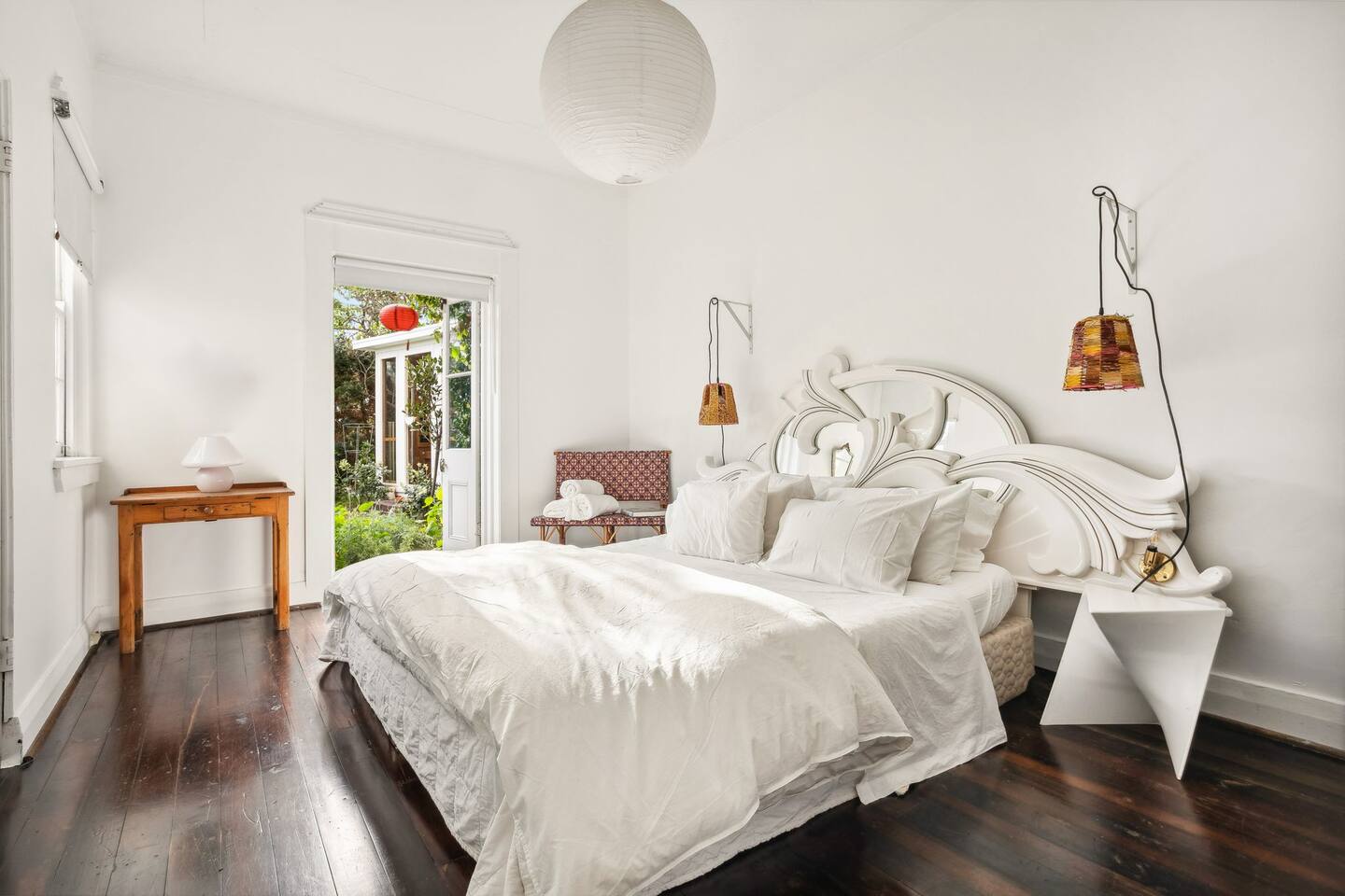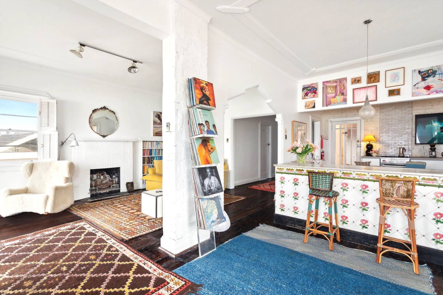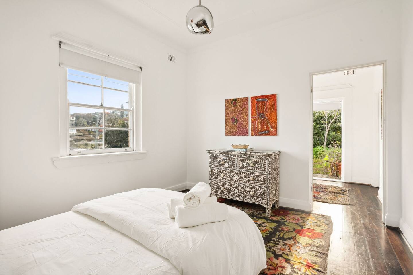 Le mélange des couleurs que l’on trouve sur les tapis kilims anciens, dans le papier-peint fleuri du bar, et les œuvres d’art en font un cadre plein de créativité et de joie de vivre. L’esprit est vintage mais avec une touche folle . Les espaces extérieurs sont également réussis, comme le joli petit jardin à l’arrière, il y a aussi la vue sur le rivage . Ses propriétaires sont deux artistes qui on exprimé ici leur sens de la couleur et leur amour pour des éléments uniques. Cette jolie maison a eu les honneurs des magazines australiens et c’est compréhensible, tant à cause de sa décoration, que de son emplacement privilégié.