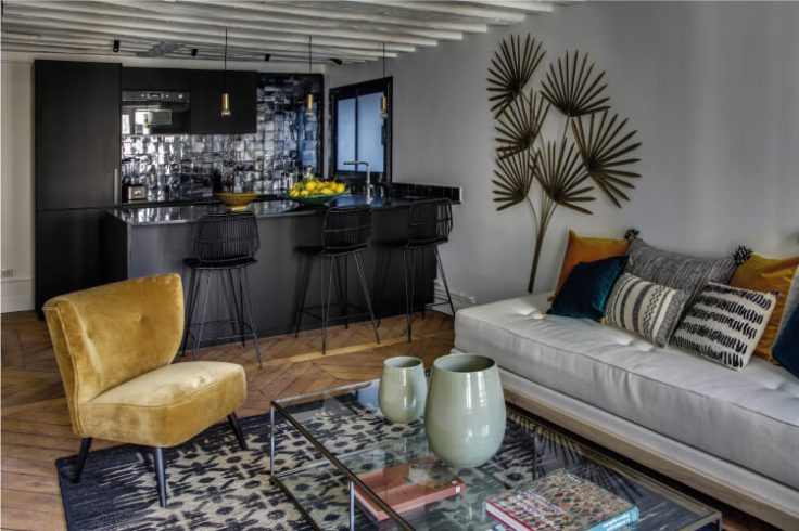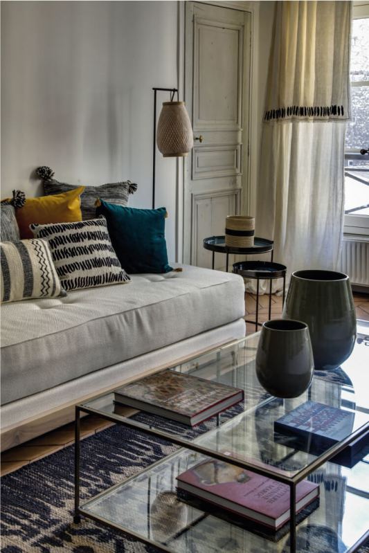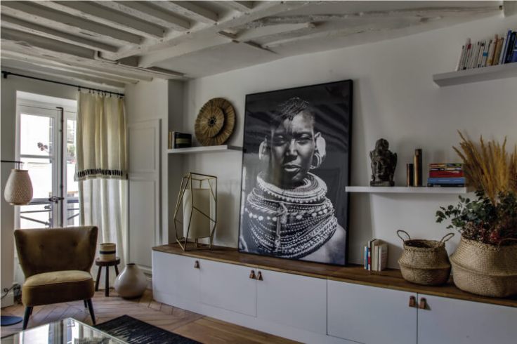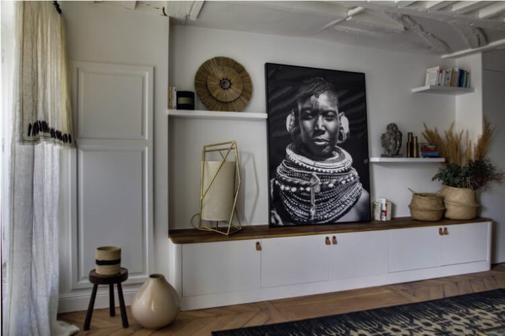 Cet appartement de la rue d’Enghein dans le 10e arrondissement parisien était dans son jus lorsque ses propriétaires ont confié sa complète rénovation à Maureen Karsenty . Ils voulaient un appartement comme une maison de vacances…avec une décoration à la fois végétale et puissante. Ils ont été servi ! L’architecte a su créer une ambiance cosy avec une touche ethnique authentique et très chic.