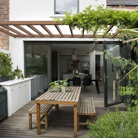 Une table en bois vintage ou un salon de jardin aux lignes épurées apporteront immédiatement la base d’une jolie terrasse très chic !