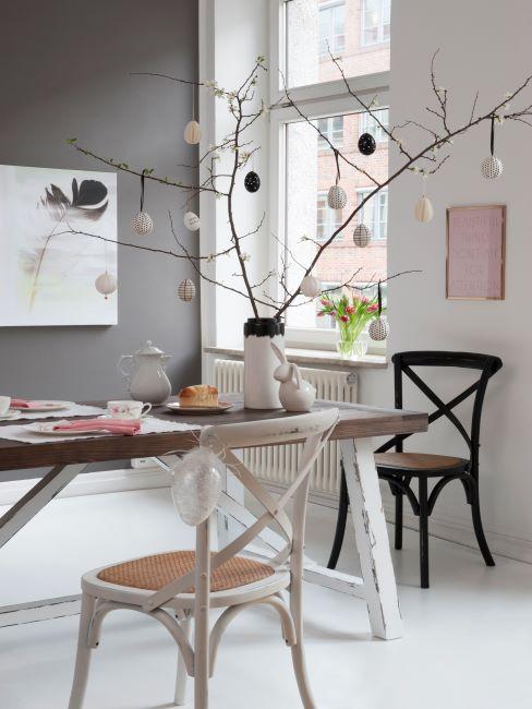Pâques est une fête printanière. Elle a lieu au mois d’avril, au moment où la nature renaît après de longs mois d’hiver. Les fleurs et la végétation dans son ensemble sortent de son silence et nous offrent toutes ses couleurs tendres et douces. La nature est donc naturellement à l’honneur pour ce repas festif ! Les bleus et les verts s’invitent sur nos tables et le jardin est investi et décoré.Pour une déco grandeur nature, réalisez un “Arbre Pascal” avec de grandes branches et des œufs décorés en guise de fruits. Il peut être installé dans votre jardin ou dans votre salon, tel un arbre de Noël. Les œufs peuvent renfermer des messages à découvrir à la fin de la journée.