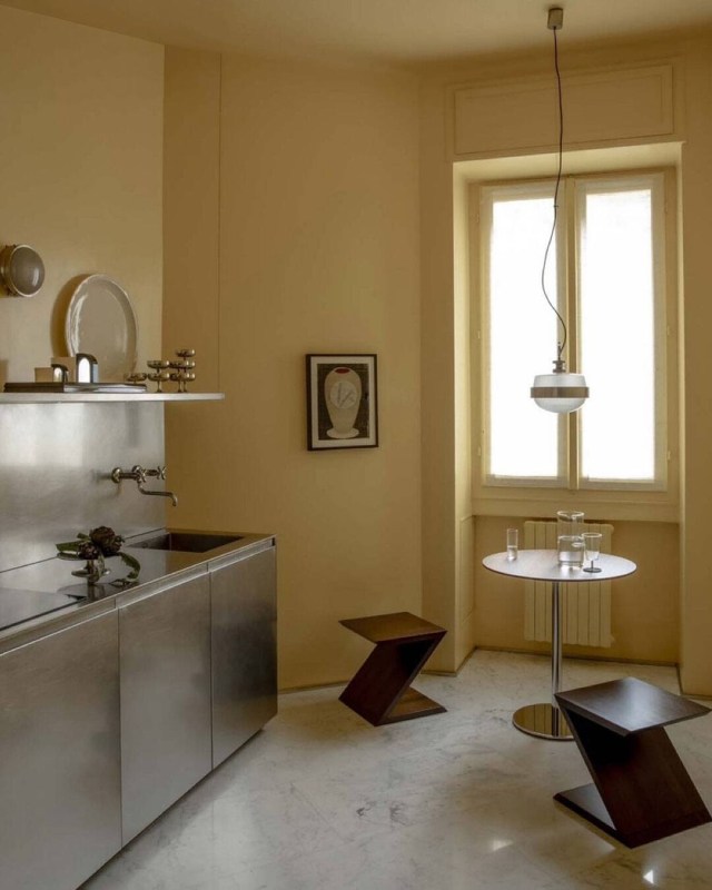 On le pensait timide, voire carrément effacé. On le croyait saisonnier, voire exclusif à décembre/janvier. Mais on s’était collectivement trompé : le métal argenté est désormais PARTOUT. Et sous toutes ses formes. Façon argenterie sur vos tablées festives et maintenant quotidiennes et façon inox, acier ou chrome tubulaire, du salon à la salle à manger. C’est FROID, vous dites ? Z-é-r-o. Et les architectes les plus en vue du moment nous le démontrent quotidiennement sur les réseaux à coups de projets argentés et conviviaux. Leur secret ? Réchauffer le métal argenté en l’associant à des couleurs chaudes comme le jaune ou en le jumelant à des matériaux terreux comme le béton. Nos excuses aux métaux dorés et au laiton, en déco il y a désormais un nouveau patron.