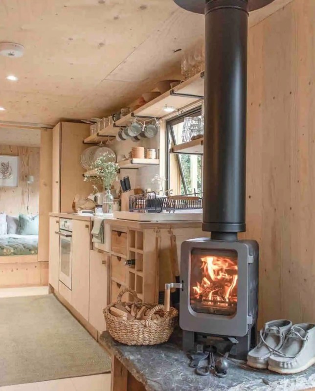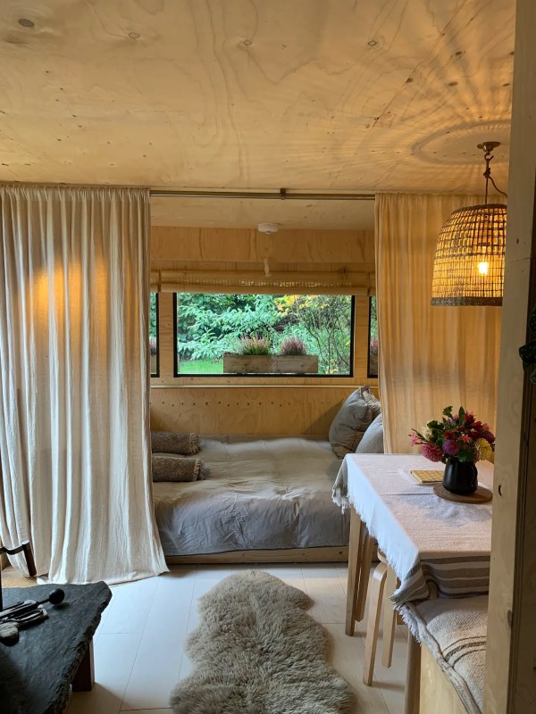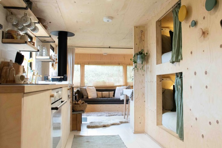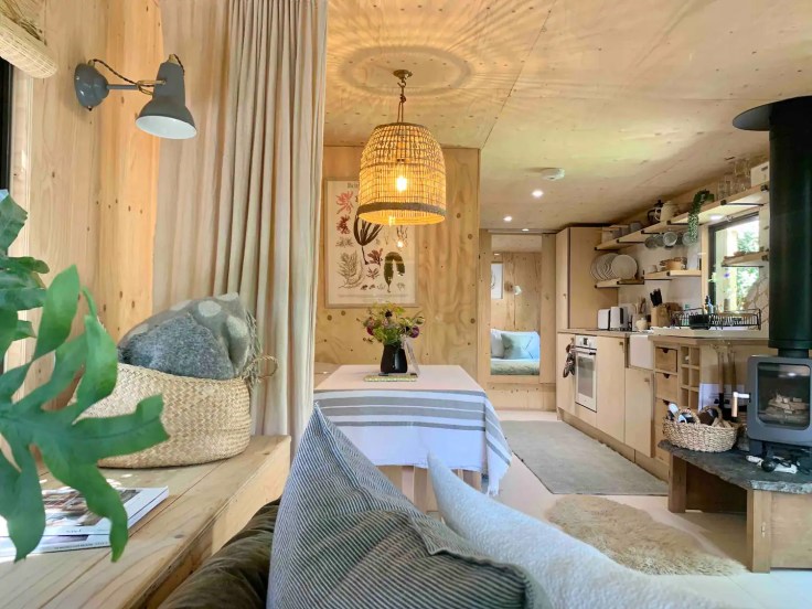 Le monde Nautique a inspiré les propriétaires de cette Tiny House . Deux cabines ont été créées pour accueillir des couchages, et un lit supplémentaire a été installé dans le salon et peut se cacher derrière un rideau. Cette Tiny house d’inspiration scandinave avec sa terrasse en bois est très élégante, possède également un joli poêle à bois bien suffisant pour réchauffer l’atmosphère lorsqu’il fait plus frais. Et cerise sur le gâteau, elle se trouve à proximité de Carbis Bay Beach , une des plus jolies plages de la côte des Cornouailles dans l’extrême sud-ouest de la Grande-Bretagne.