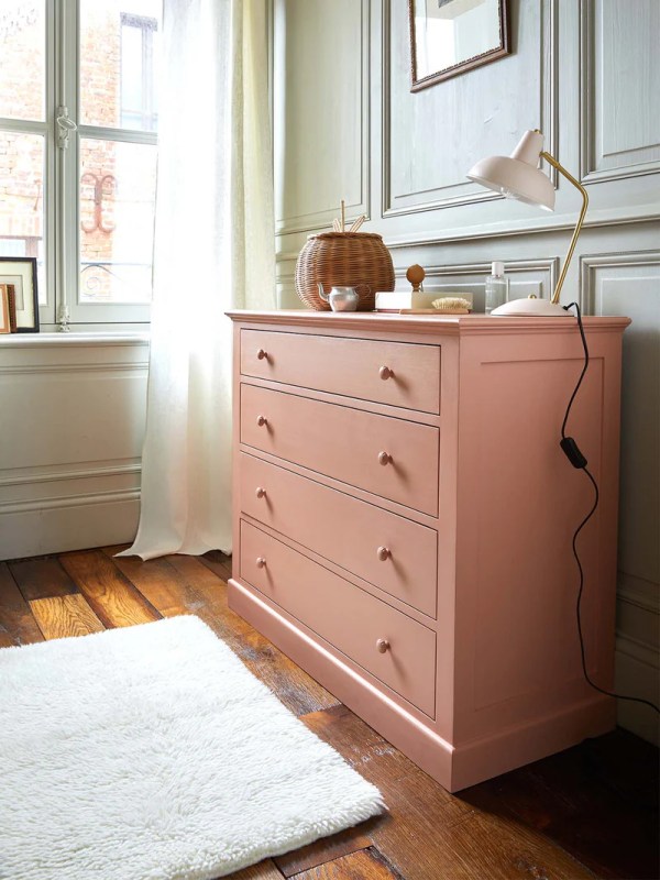 La commode Valentine fait partie de ces commodes authentiques au style campagne que l’on retrouve dans nos maisons de famille. Elle se compose d’un plateau mouluré et de 4 tiroirs agrémentés d’anneaux en métal peint finition brossée (coloris vert olive, crème et nude) ou de boutons peints (coloris bois de rose). Sa finition effet « coups de pinceau » est réalisée à la main.