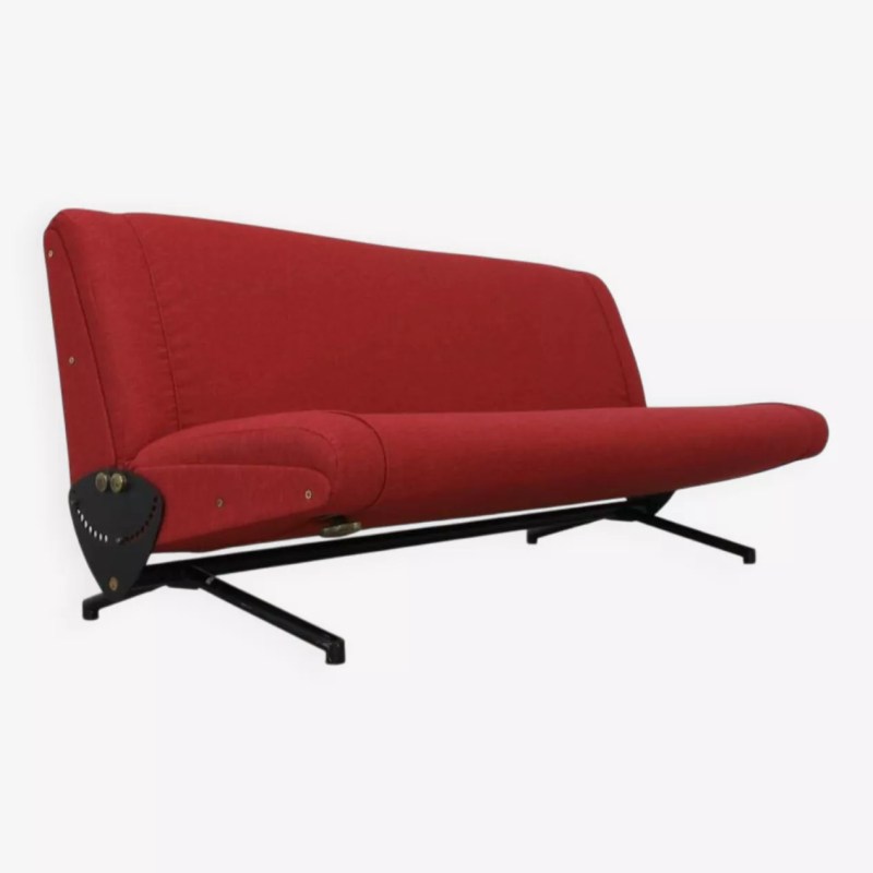 Designer osvaldo borsani fabricant tecno italie dimensions h 83 X l 190 X p 90 cm, hauteur d’assise 42 cm état très bon, entièrement retapissé. Structure en état vintage d’origine. Matériau textile, métal couleur rouge, noir remarque 1ère édition code 03210325ss.