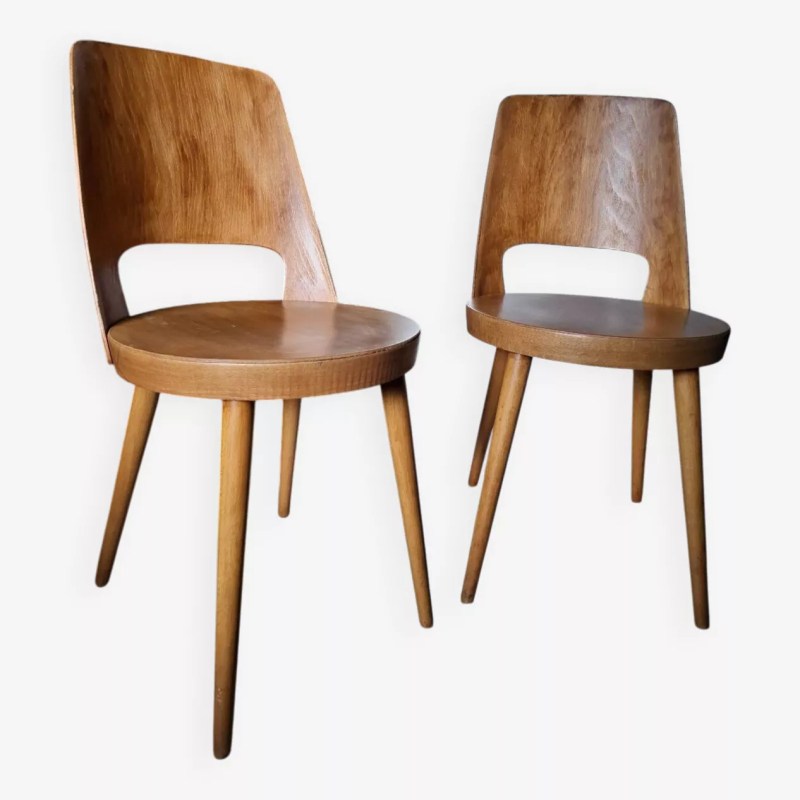 Jolie paire de chaises bistrot baumann. Modèle iconique mondor. Vernis blond. Traces normales du temps. Parfaitement stables. Hauteur d’assise 43cm.
