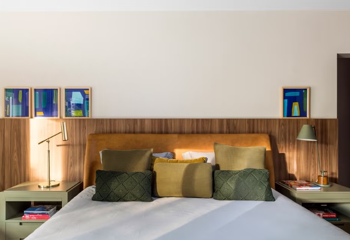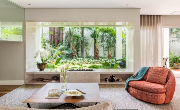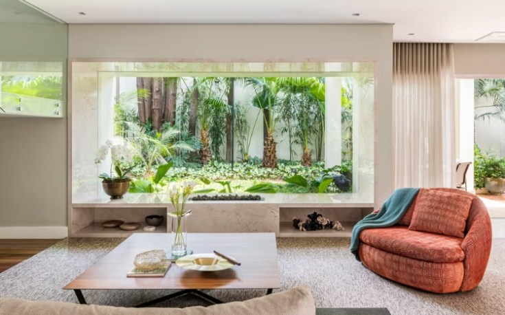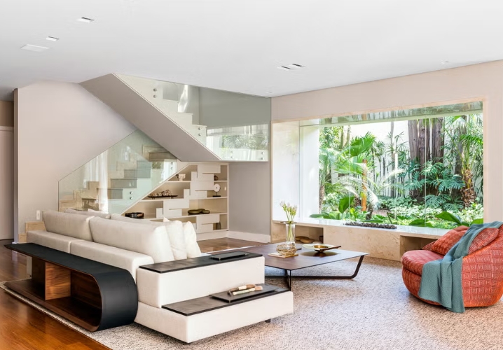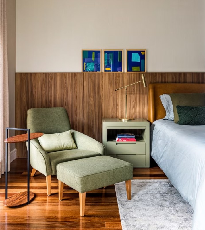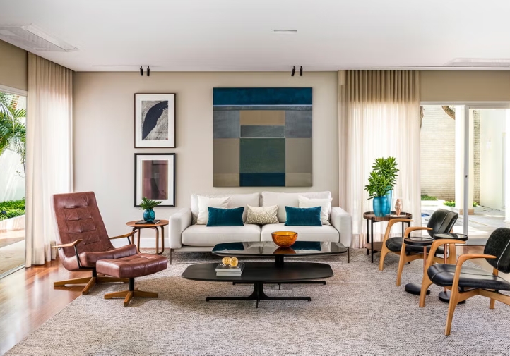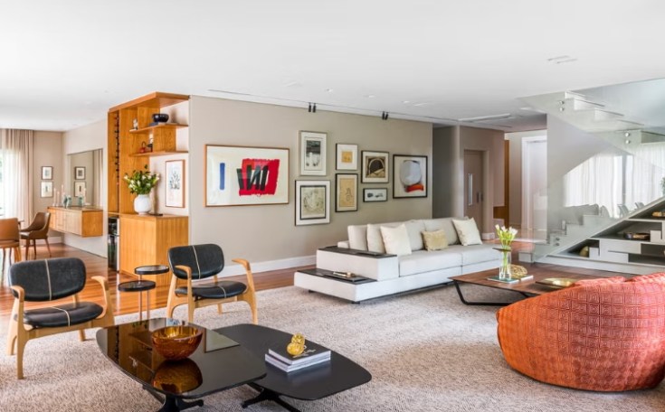 Les propriétaires, véritables passionnés de design contemporain, ont choisi avec soin chaque meuble. Le fauteuil Preguiça Gira Gira d’Alfio Lisi occupe une place centrale dans le salon, tandis que des œuvres d’artistes renommés tels que Tomie Ohtake, Alfredo Volpi, Arthur Piza et Hans Grudzinski ajoutent de la profondeur et de la personnalité à chaque pièce. réalisation Andrea Balastreire, architecte