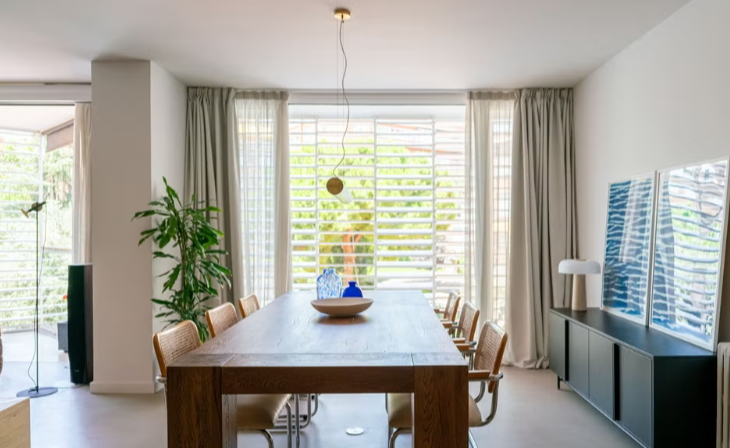 Une maison de style industriel à Barcelone est ultra lumineuse et décorée avec des meubles design iconiques d’inspiration rétro.