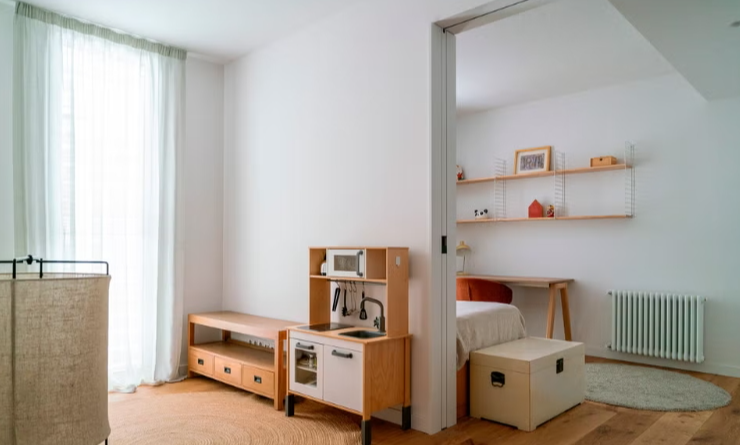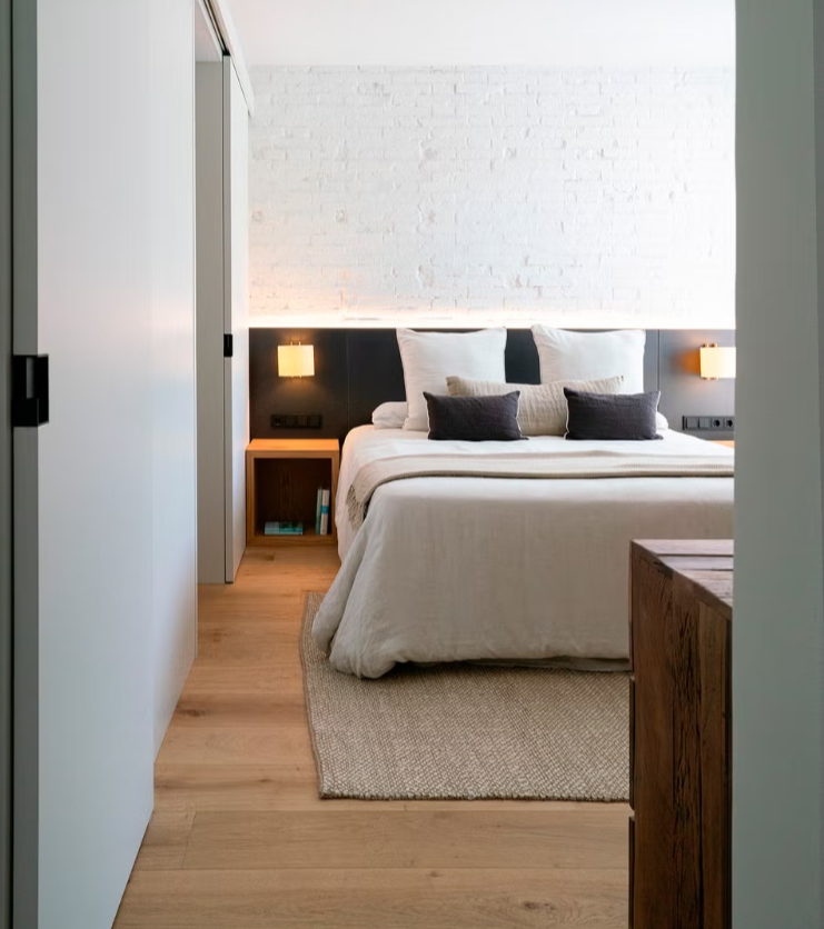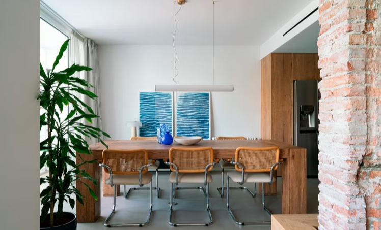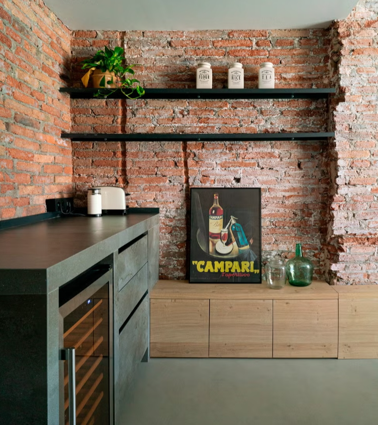 L’utilisation du mur principal en briques apparentes comme élément de coordination du salon, la sophistication industrielle de la cuisine, une étude méticuleuse de la lumière et l’attention portée aux détails dans les meubles sur mesure ajoutent au charme particulier de cette maison familiale située dans un bâtiment conçu par le célèbre architecte José Antonio Coderch. La palette de couleurs explore les tons terre, les gris et les verts foncés, tandis que le métal noir et le bois naturel renforcent le caractère industriel du projet, créant une atmosphère élégante, sophistiquée et intemporelle.