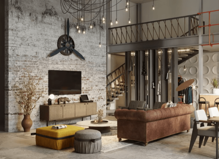 - Matériaux bruts et exposés (tels que le béton ou la brique).