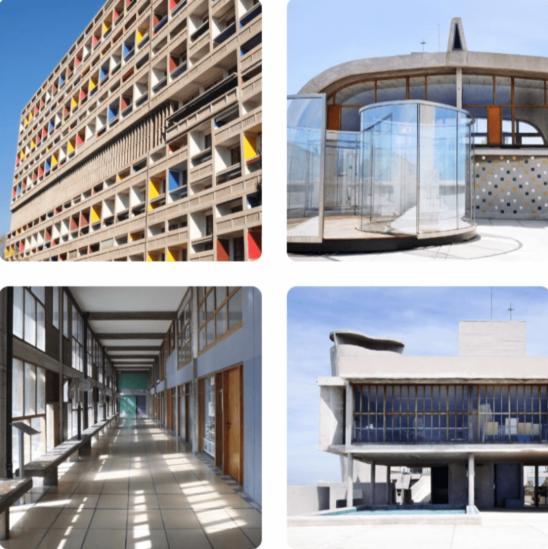 photos Cité Radieuse Marseille Le Corbusier – Le Barbican Centre Londres, Angleterre – Habitat 67 Montréal, Canada – Bibliothèque Geisel San Diego, Californie – Eglise Wotruba Vienne, Autriche –