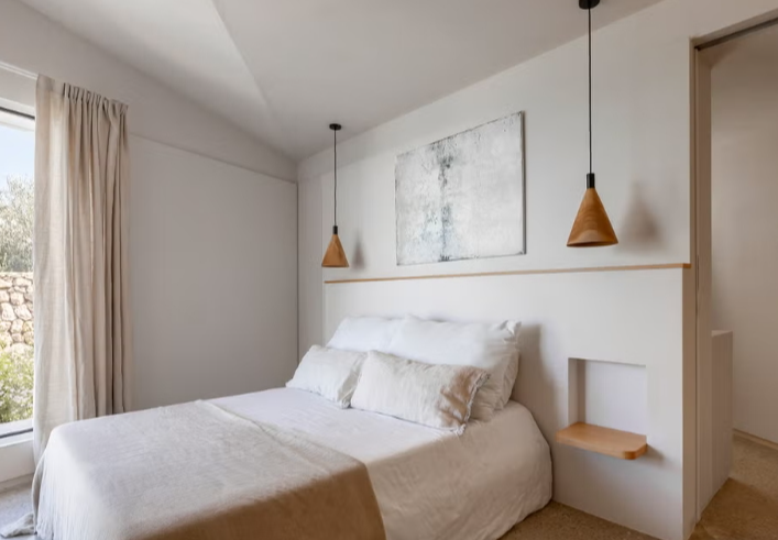 Avec un style méditerranéen et minimaliste, le projet est basé sur l’essence des maisons minorquines et donne lieu à une maison chaleureuse et accueillante . Chaque chambre donne sur la mer Méditerranée, présente à tout moment, et sur l’environnement naturel privilégié qui l’entoure. Ce lien avec le paysage est renforcé par le jardin de la maison, conçu par la paysagiste Ruth Baygual, qui se concentre sur les espèces indigènes.