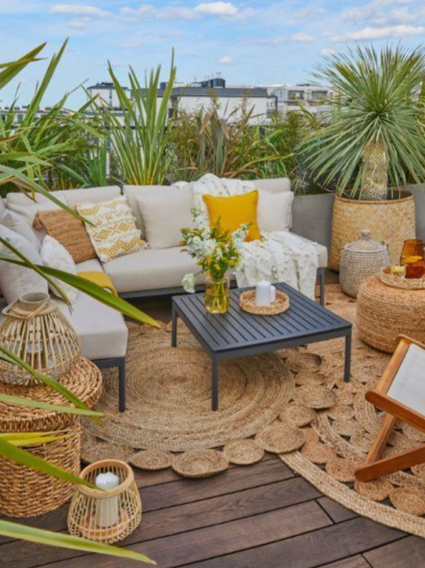 Pour un look assorti, optez pour une déco bohème en les installant dans des cache-pots en céramique vieillie et en posant des tapis en jute et des coussins en coton tufté à franges dans des couleurs estivales.