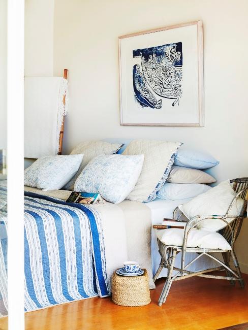 Le bleu est LA couleur à privilégier dans une chambre au style bord de mer. Mais selon son intensité, sa présence et les différents éléments associés il donnera à la pièce un air marin dynamique, tendance, zen…