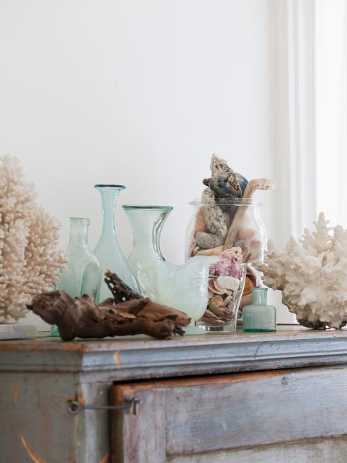 - Le look bord de mer épuré existe également.En général, il nait dans une chambre immaculée, teintée ici et là de notes taupe ou grisées, où sont dispatchés quelques accessoires évoquant la mer et la plage : une branche de bois flotté, un cache-pot ou un vase en forme de coquillage