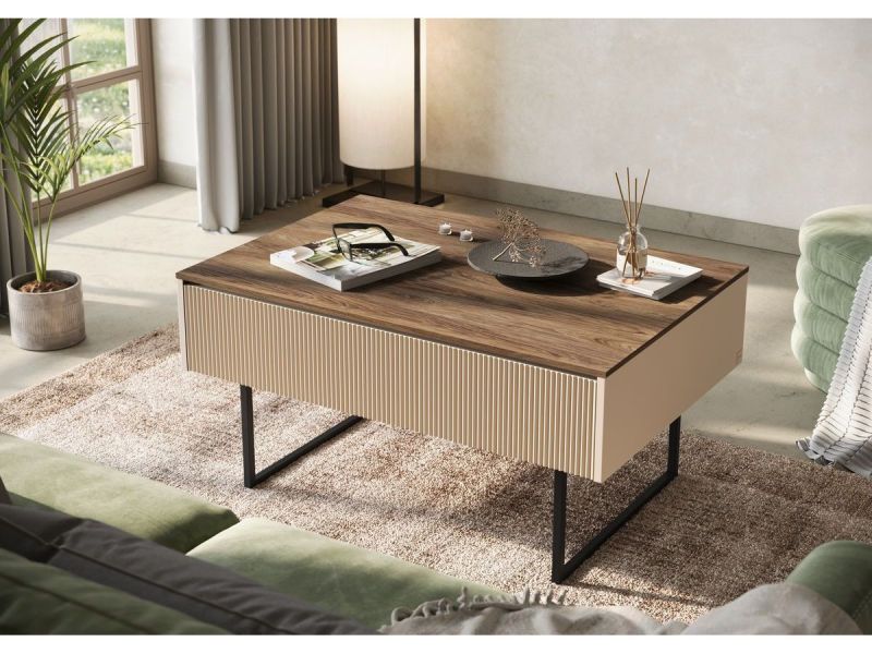 Table basse 1 porte 100 cm LOUNA beige Bobochic