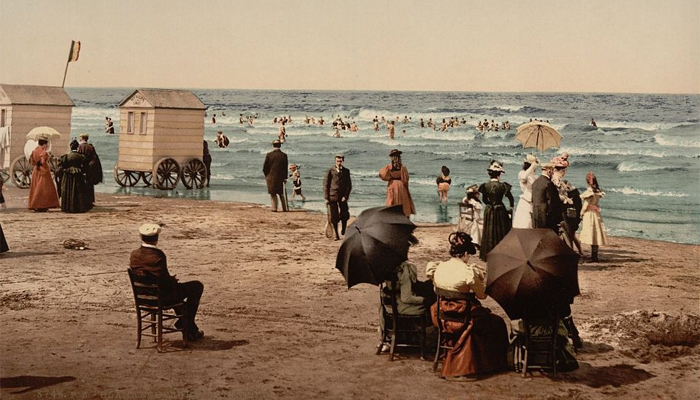 Ces cabines mobiles permettaient aux baigneurs (et surtout aux baigneuses) non seulement de se changer à l’abri des regards, mais également de rentrer dans l’eau sans être vus. Une trempette en toute discrétion, dans le respect des mœurs de l’époque. Lorsque celles-ci s’assouplirent dans les années 1920, ces cabanes furent abandonnées.