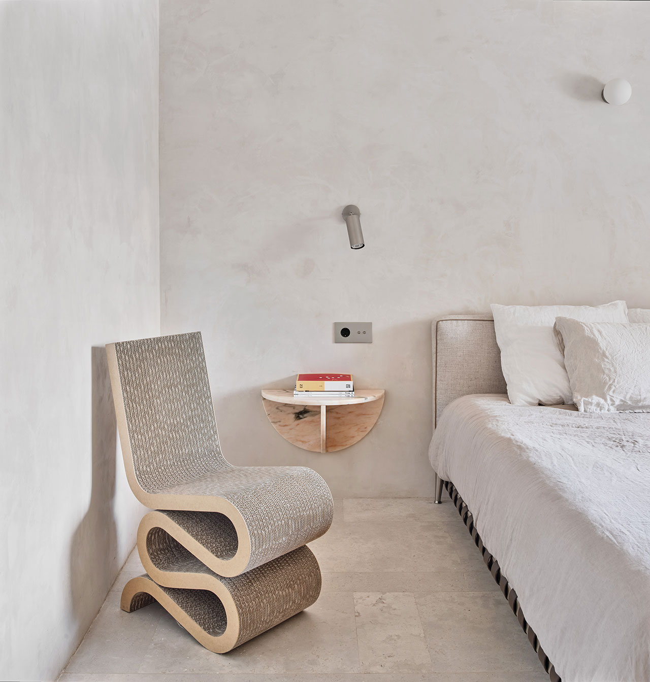 Sous les pieds, les sols en pierre offrent une base solide et texturée. Les tons naturels et les motifs subtils de la pierre évoquent une connexion avec l’extérieur, renforçant l’aspect terreux et ancré de la maison.