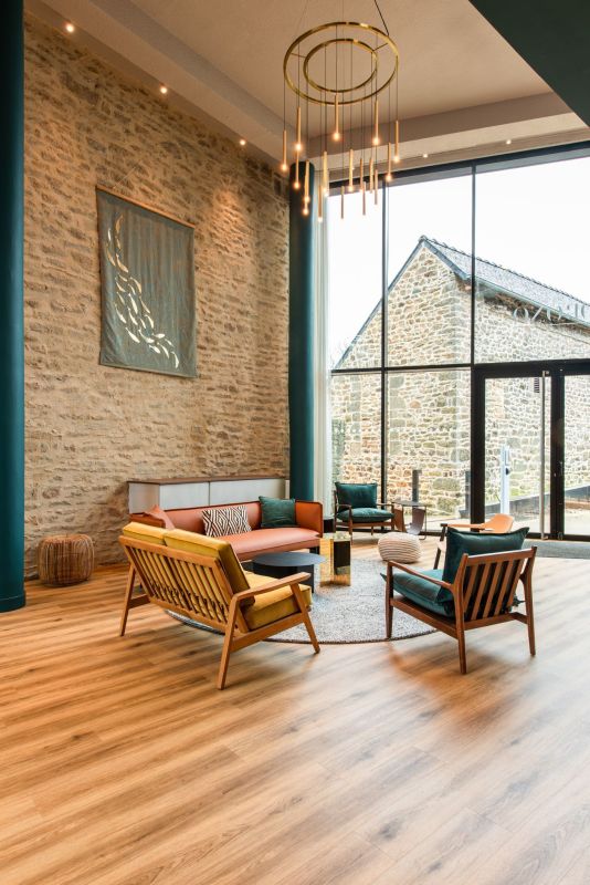 Nichée dans un écrin de verdure au coeur du Golfe du Morbihan, La Maison Obono se dévoile comme une adresse confidentielle pour les amateurs d’expériences hôtelières haut de gamme. Ce 4 étoiles, fruit de la rénovation du manoir de Kerdréan datant du 13ème siècle, marie l’authenticité de son patrimoine en vieilles pierres au design contemporain soigné. L’agence D+B Design Studio y a créé une atmosphère hors du temps, mêlant les époques et les styles. Les 68 chambres de l’hôtel, réparties entre le manoir historique et l’extension moderne, offrent un confort certain dans une ambiance chaleureuse. Inspirée par l’océan tout proche, la décoration joue sur les tons de vert, de bleu et de sable. Le lobby en double hauteur, baigné de lumière, invite à la détente avec son mobilier contemporain et ses objets chinés. L’expérience se poursuit dans le restaurant qui propose un voyage culinaire dans un cadre évoquant la cuisine d’antan. La Maison Obono s’impose comme une nouvelle adresse dans le paysage hôtelier du Golfe du Morbihan. Son concept de « maison de famille » haut de gamme alliant le charme d’un manoir historique au confort moderne, devrait séduire une clientèle en quête d’expériences authentiques.