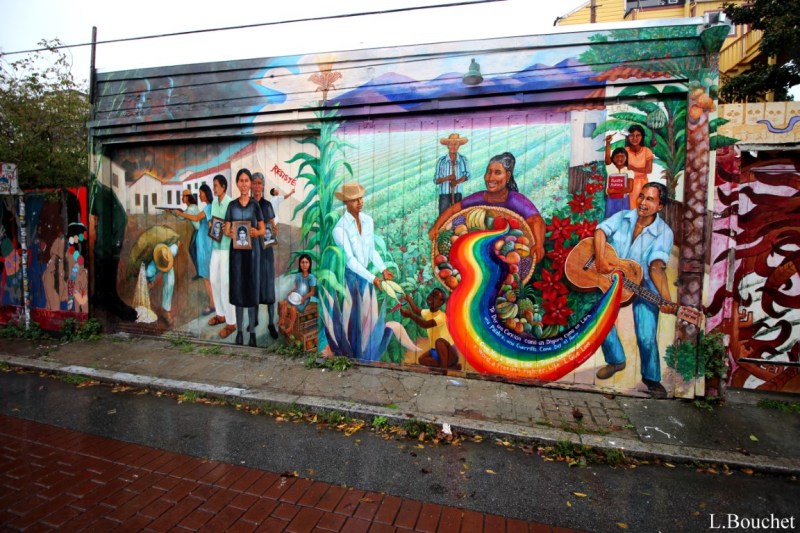 Des fresques murales sont réparties dans tout le quartier de Mission District. Si la plus grande concentration se trouve dans Balmy Alley, une venelle défraîchie, les plus belles sont situées à l’angle nord-est de Mission Street et de 24th Street, et à l’angle de 24th Street et de South Van Ness Avenue. L’art de la fresque étant de plus en plus populaire, de nouvelles œuvres fleurissent un peu partout et se découvrent le nez au vent, dans ce quartier coloré de San Francisco. photos et article rédigé par Louis Bouchet