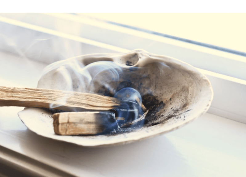 Avant de brûler votre bâton de sauge, assurez-vous d’avoir à portée de main un bol résistant à la chaleur pour recueillir les éventuelles braises. On pourrait croire qu’une flamme directe est nécessaire, mais même un frémissement suffit. Une fois que votre bâton de sauge commence à émettre de la fumée, faites-en le tour de votre maison : en partant de la porte d’entrée et en allant dans le sens des aiguilles d’une montre, guidez la fumée de manière à ce qu’elle atteigne tous les coins. Faites attention aux pièges énergétiques typiques tels que les miroirs et les espaces cachés où l’énergie stagnante a tendance à s’accumuler. Lorsque la fumée atteint ces endroits, visualisez-la en train de collecter la négativité et de l’évacuer par les fenêtres.