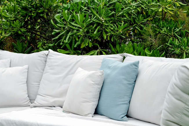 Pour vos bancs, chaises longues ou palettes transformées en salon d’extérieur, ces vieux draps que vous gardez depuis des siècles peuvent devenir de fabuleuses housses à coussins ! Résistants et faciles à laver – parfait pour cacher les inévitabilités de la vie en extérieur (comme une tache de barbecue, par exemple) – ils sont votre arme secrète pour ajouter un soupçon de confort et de style à vos espaces extérieurs, tout en préservant votre porte-monnaie de l’effondrement !