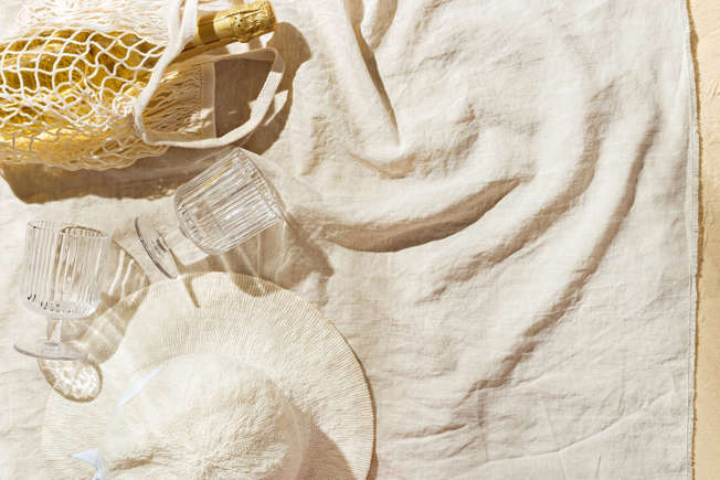 Les draps en coton aux motifs fantaisistes peuvent se transformer en nappes flamboyantes pour vos repas en extérieur – parce que qui a besoin de vaisselle chic quand on peut avoir des fleurs géantes sous le nez ? Il vous suffit de les découper à la taille de la table, et pour éviter que le vent ne les transforme en planeurs, n’hésitez pas à rajouter un ourlet ou quelques kilos de petits cailloux. Bon appétit et bonne chance !