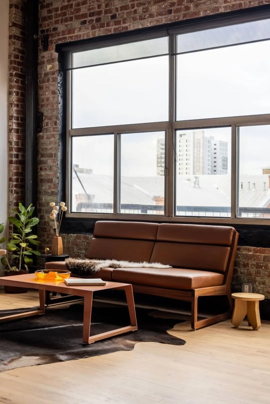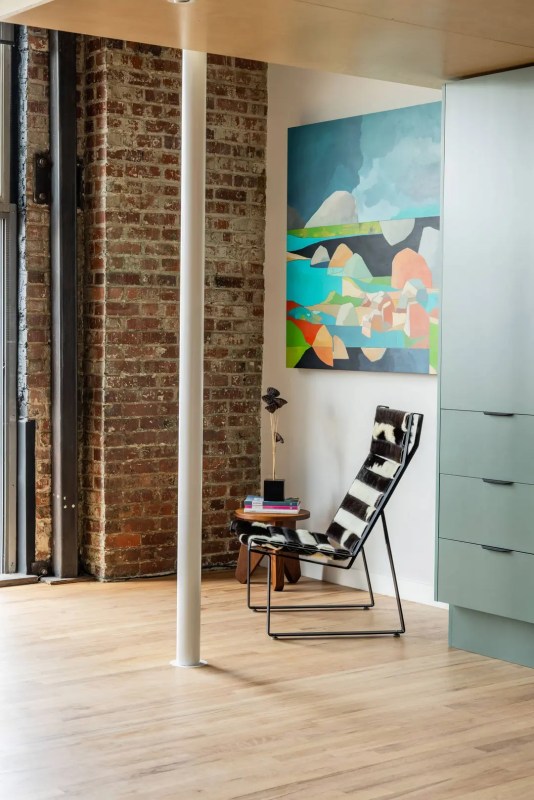 Intérieur élégant d’un loft rénové à Denver, alliant briques d’origine et design moderne.